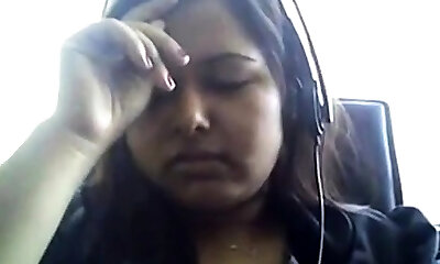 Bored Desi plump on webcam plays with her boobie