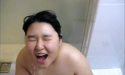 Chubby Korean GF's golden shower