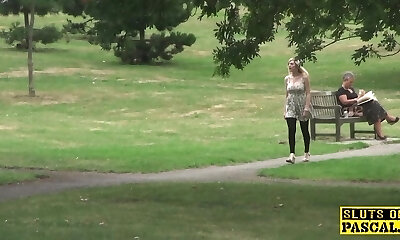 Pale ash-blonde damsel Layla Belle masturbates and gets fucked in the woods