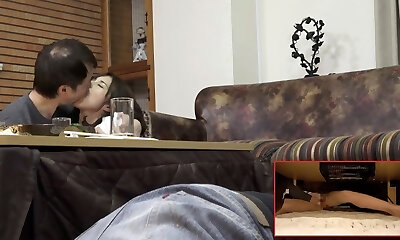 мамаша втайне вожделеет мужчину, который не является ее супругом, резвящимся сама с собой под столом - трио