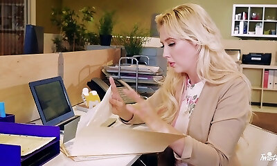 Lean long hair cowgirl with hot ass throbbed hardcore in the office