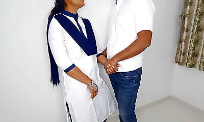 Hot Indian Desi schoolgirl was fucking with teacher in coching room on dogy style and clear loud speak talk in Hindi