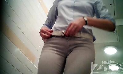 Fine milky stranger girl in high heel footwear filmed pissing in the toilet