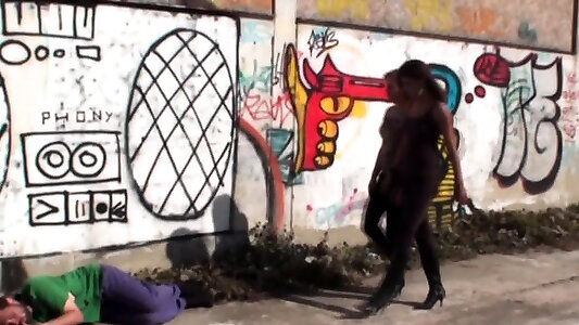 Lady in high high-heeled shoes gobbling marionette flawlessly in femdom shoot