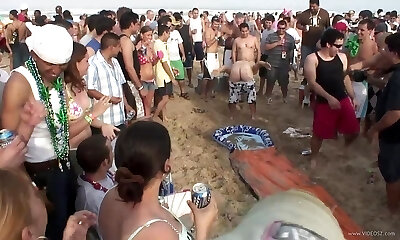 Drunk Party Girls in Sexy Bathing Suits at the Beach