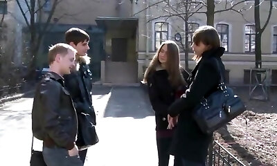 Hilarious blond teens take a chance to suck a strong super-steamy and big cock (FFM)
