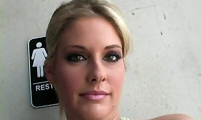 Pretty blonde gargles a cock thru a glory hole right at the office then gets fucked by her horny chief