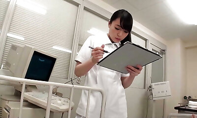 Sultry Asian nurse, Chihiro Akino, emerges impatient to engage in a super-fucking-hot three-way with these two folks - JAV Gonzo!
