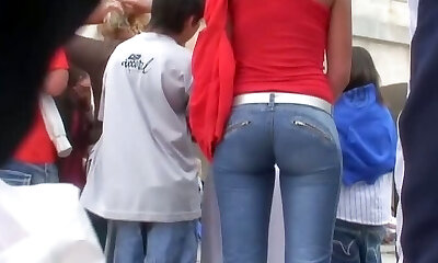 эта азиатская бродяжка увидела, как они приближаются, и наклонилась, чтобы зашнуровать свою обувь и показать свою съедобную пинетку