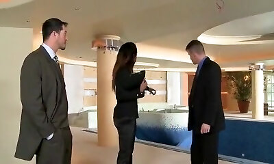 раскаленную докрасна ассистентку размалывают в порошок два члена и она получает двойной взрыв на лице