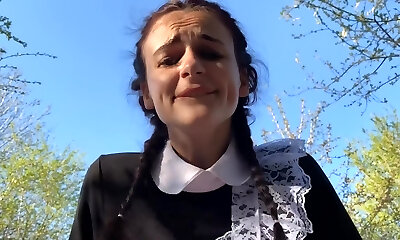 горячая школьница с тугими влажными половыми губами получает жесткий трах от своего отчима после школьного урока и кончает внутрь