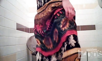Arab woman goes pee in a public restroom
